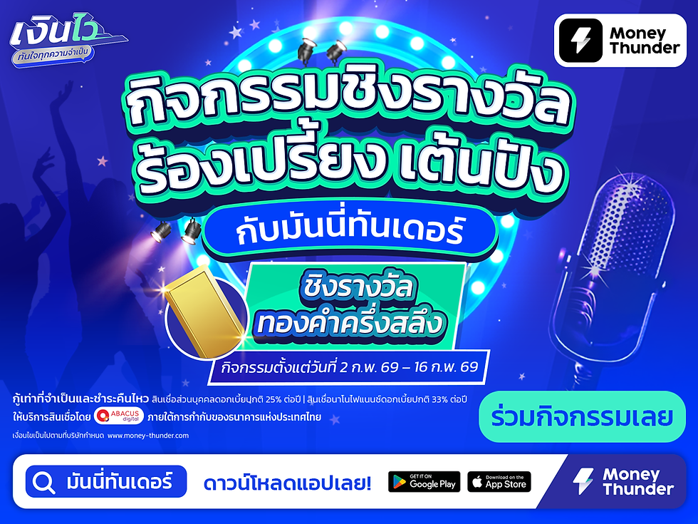 โดยใส่ข้อความ กู้เท่าที่จำเป็นและชำระคืนไหว | สินเชื่อส่วนบุคคลดอกเบี้ยปกติ 25% ต่อปี สินเชื่อนาโนไฟแนนซ์ดอกเบี้ยปกติ 33% ต่อปี ให้บริการสินเชื่อโดยบริษัท อบาคัส ดิจิทัล จำกัด เงื่อนไขเป็นไปตามที่บริษัทกำหนด http://www.money-thunder.com